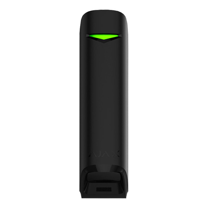 Détecteur de mouvement rideau sans fil Ajax noir – Portée 15m, angle étroit, immunité animaux, antisabotage, autonomie 3 ans, protection idéale portes et fenêtres.
