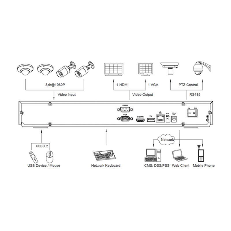 DAHUA - NVR2208 - Enregistreur IP - 8 Voies - 2 HDD - Non PoE - 40Mbps - 1 HDMI - 1 VGA - 1 RJ45