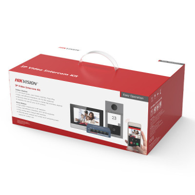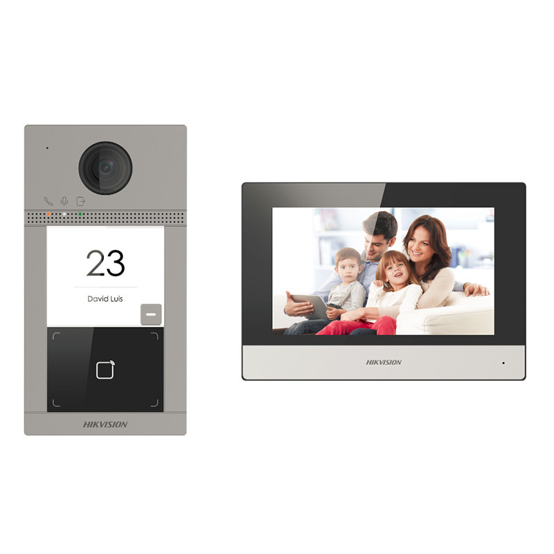 Kit vidéo interphone avec un bouton d'appel - 7" TFT - 1024 × 600 - Écran tactile capacitif - Audio bidirectionnel - Wi‑Fi et Ethernet - Jusqu'à 32 Go de carte TF pour stockage - 12 V / PoE