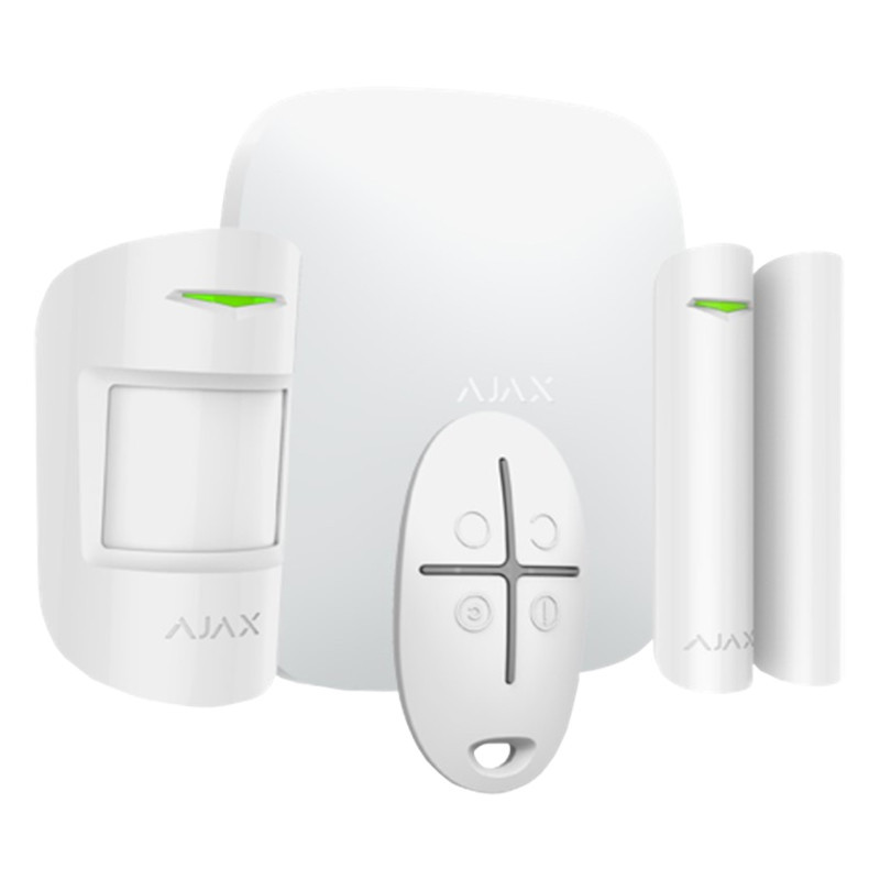 Le kit de démarrage pour le système de sécurité Ajax. Le kit se compose d'un hub, d'un détecteur de mouvement, d’un détecteur d’ouverture et d'une télécommande avec bouton de panique. Coloris : Blanc