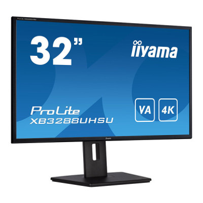 iiyama ProLite XB3288UHSU-B5. Taille de l'écran: 80 cm (31.5"), Résolution de l'écran: 3840 x 2160 pixels, Type HD: 4K Ultra HD, Technologie d'affichage: LCD, Temps de réponse: 3 ms, Format d'image: 16:9, Angle de vision horizontal: 178°, Angle de vision vertical: 178°. Haut-parleurs intégrés. Concentrateur USB intégré, Version du concentrateur USB: 3.2 Gen 1 (3.1 Gen 1). Montage VESA, Réglage de la hauteur. Couleur du produit: Noir