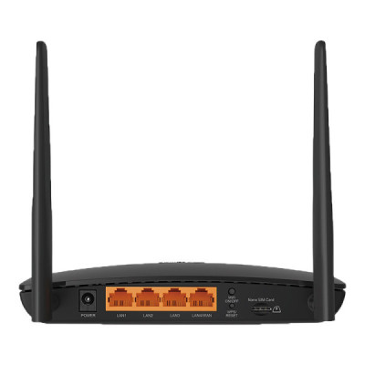 TP-Link TL-MR6400. Type de connexion WAN: RJ-45. Bande Wi-Fi: Monobande (2,4 GHz), Norme Wi-Fi: Wi-Fi 4 (802.11n), Débit de transfert des données WLAN (max): 300 Mbit/s. Type d'interface LAN Ethernet: Fast Ethernet, LAN Ethernet : taux de transfert des données: 10,100 Mbit/s, Technologie de cablâge: 10/100Base-T(X). Génération de réseau mobile: 4G, Normes 2G: Edge, GPRS, GSM, Normes 3G: HSPA+, UMTS. Algorithme de sécurité soutenu: 64-bit WEP, 128-bit WEP, WPA, WPA-PSK, WPA2, WPA2-PSK, Pare-feu de sécurité: DoS, SPI Firewall, IP and MAC Address Binding