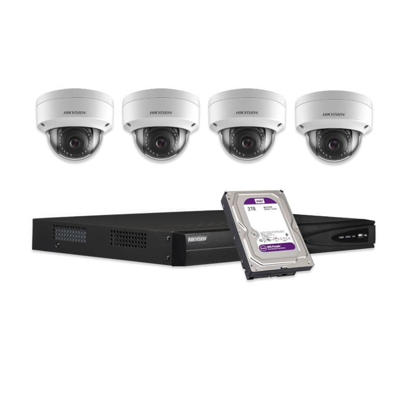 KIT-IP-4-DOME-3MP - HIKVISION - 4 Cam 2MP 2.8mm / 1 NVR / 1 HDD