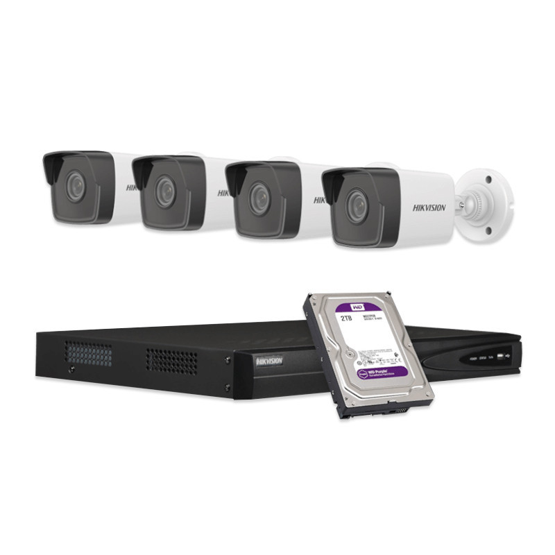 HIKVISION - KIT-IP-4-TUBE-3MP - Kit vidéosurveillance HIKVISION - 4 caméras Tube IP PoE 3MP - Focale fixe 2.8mm - 1 NVR 4 voies PoE - 1 HDD 2To